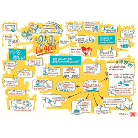 Viele kennen den Satz „Meine Schrift kann keiner lesen“ und das heißt oft, dass wir in der Moderation bzw. am Flipchart unsere Schrift nur ungern einsetzen. In diesem Workshop liegt der Fokus darauf, die eigene Handschrift zu verbessern, zu variieren und für die visuelle Darstellung gekonnt einzusetzen. Mit wenigen Strichen werden wir gemeinsam ohne zeichnerisches Talent mit Schrift Akzente setzen. Damit erhöht sich die Lesbarkeit und die Verständlichkeit und es stärkt die Sicherheit im Tun. Wir, die DB Zeichner, zeigen, wie sich jeder eine leserliche Schrift „angewöhnt“ und wie mit kleinen Veränderungen Effekte und Stile erzeugt werden. Sie erhalten Stifte, das Workbook der DB Zeichner und ein digitales Handout.